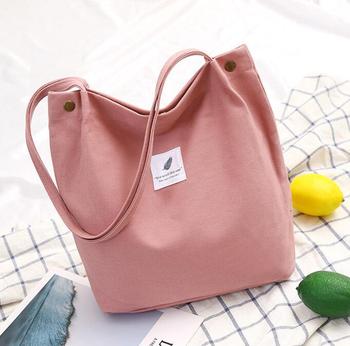 Roze Canvas Katoen Stof Shopping Tote Tas voor Vrouwen