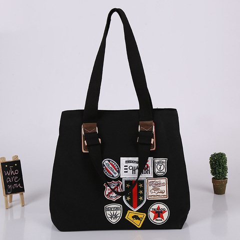 핫 세일 새로운 디자인 블랙 컬러 열전달 인쇄 코튼 캔버스 핸드백
